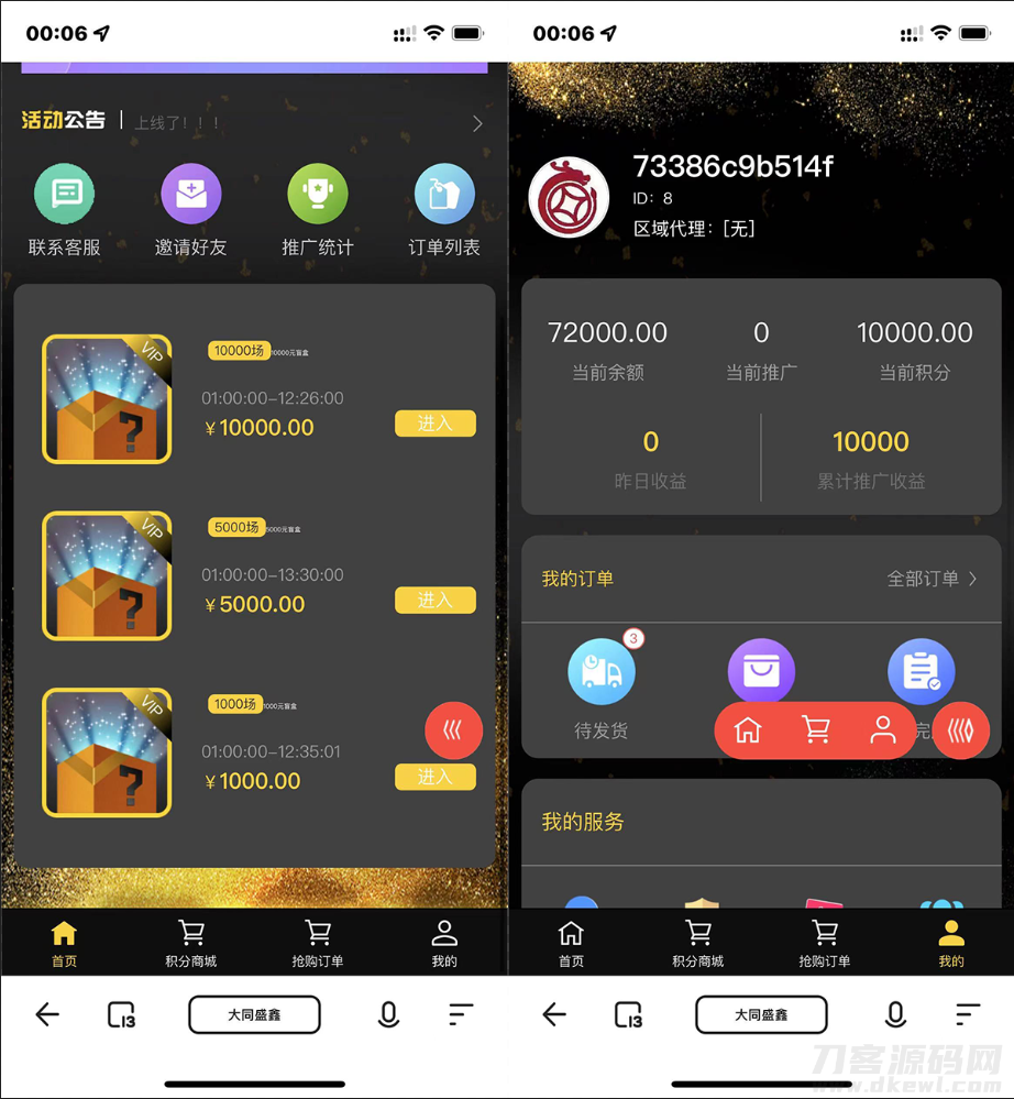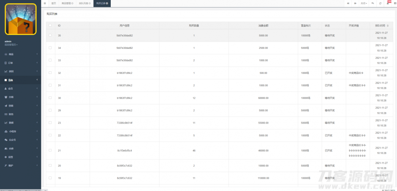 H5拼团抽奖盲盒源码,抽奖拼团玩法,三个房间,每个房间的价格不一样,比如1000的房间,里面的商品价格是1000以内的,用户购买之后等待开奖,然后平台随机发货,盲盒模式