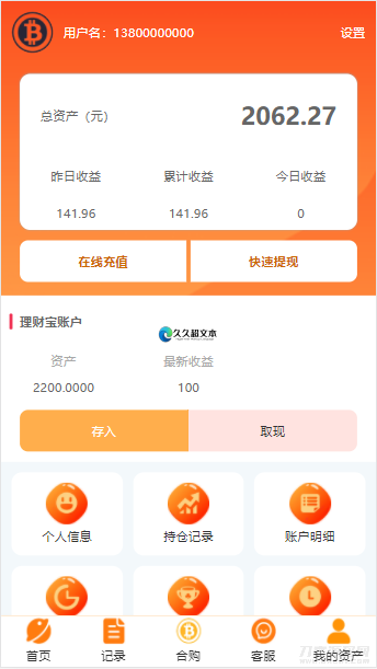 BTC理财,BTC contract,K线完整,带余额宝,内置客服系统,超完美,带搭建教程。