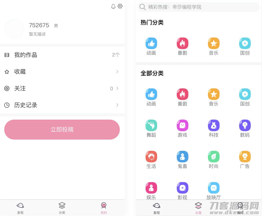 前台用户直接发布视屏。录播视屏
