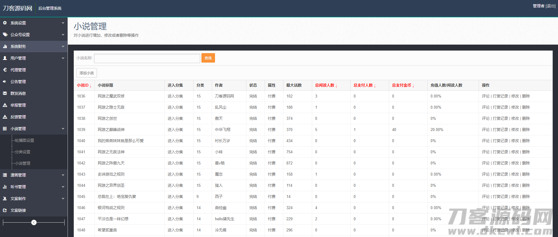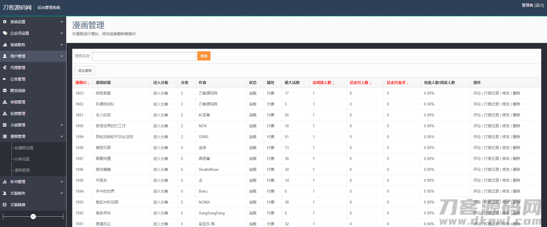 很多的站长都在找的源码,外面无错的也都卖到几K的,这里分享出来,并且修正了一些bug,可以链接一个第三方的影视站点(电影类的论坛发布了不少自己再搭建一个就可以),并且该小说、漫画、听书聚合手机网站还带有打赏功能,试看功能,接入第三方的支付。
