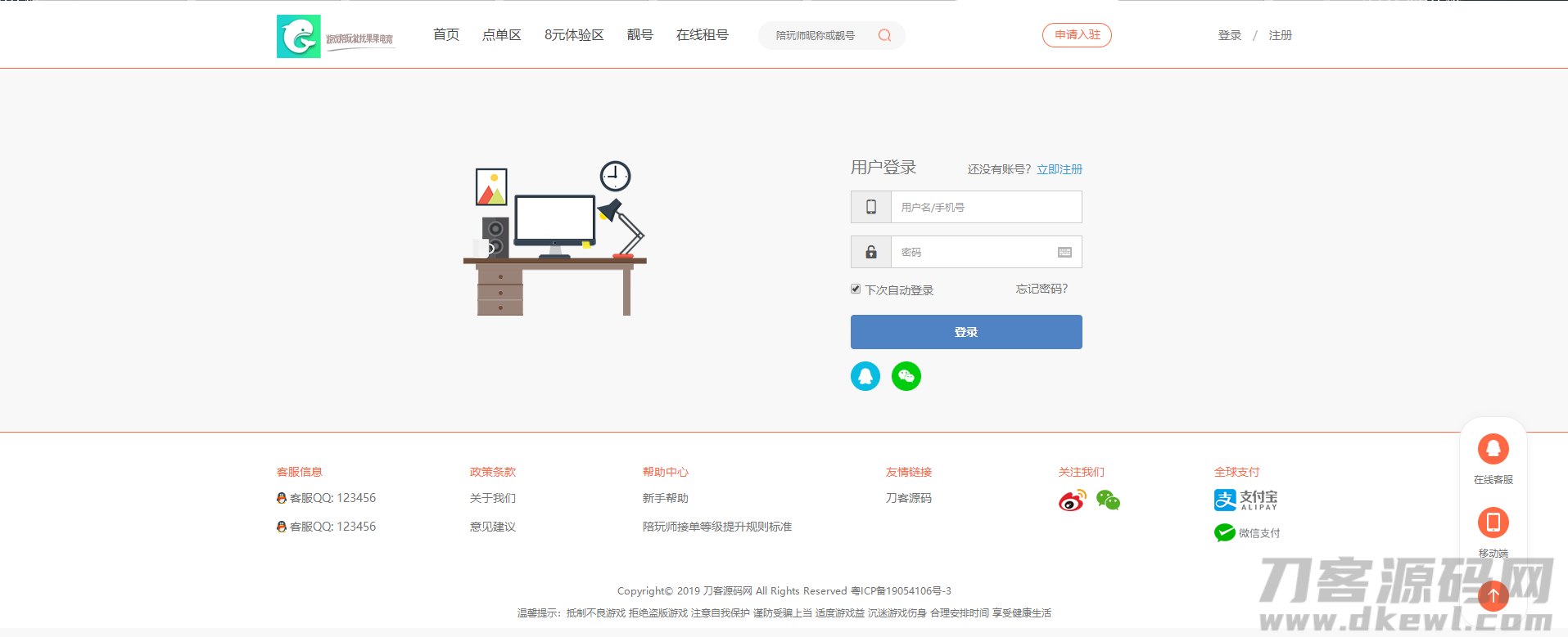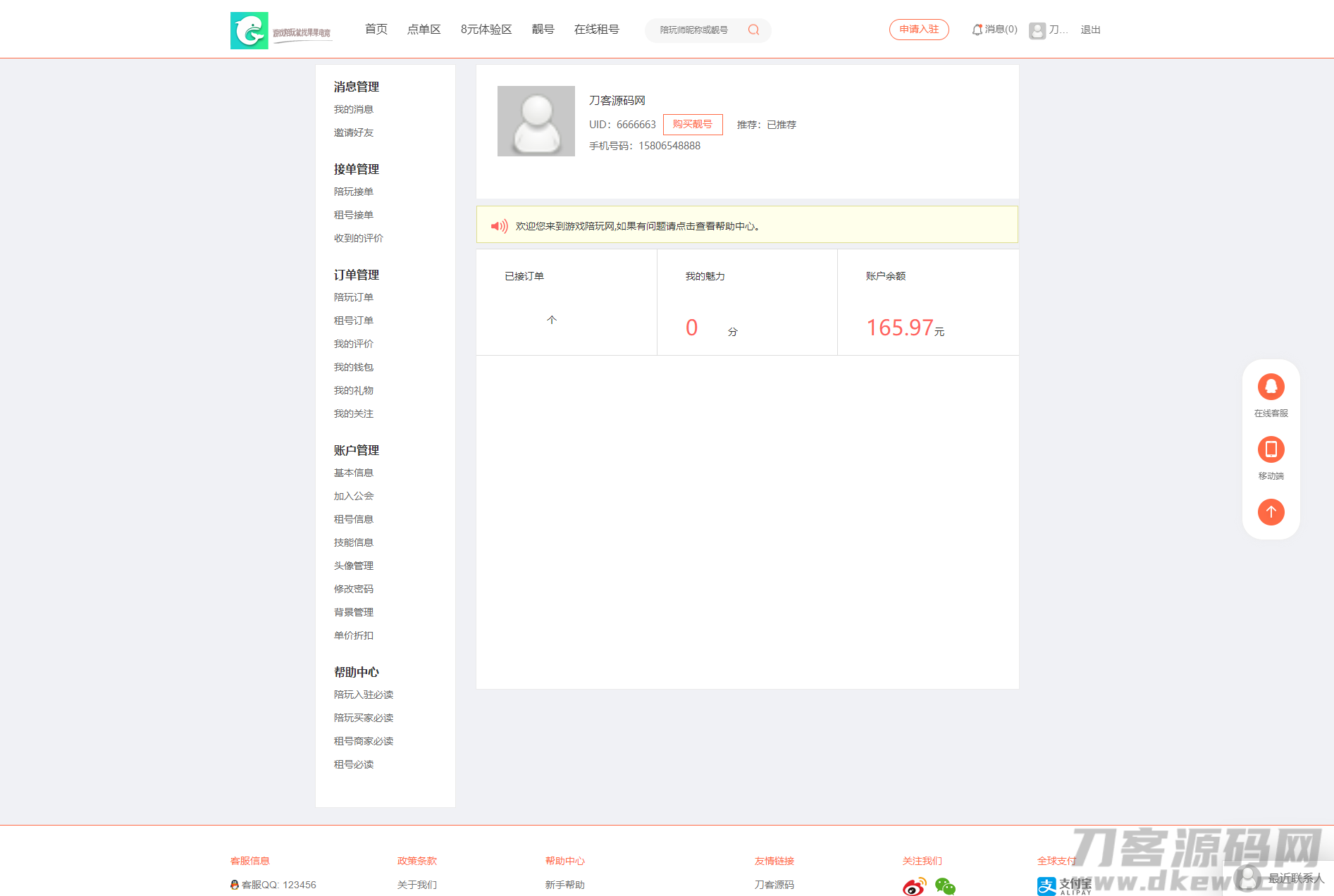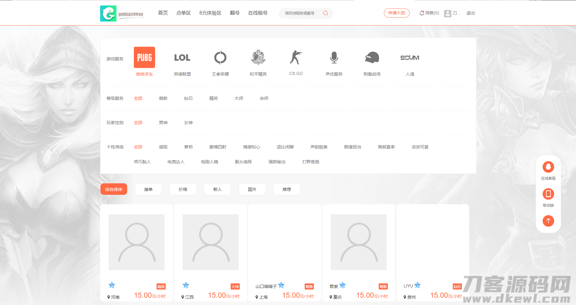 游戏陪玩系统/在线租号系统/小姐姐陪玩任务系统/网游主播任务威客平台源码/绝地吃鸡LOL在线下单/带手机端/声优线上游戏任务系统网站源码