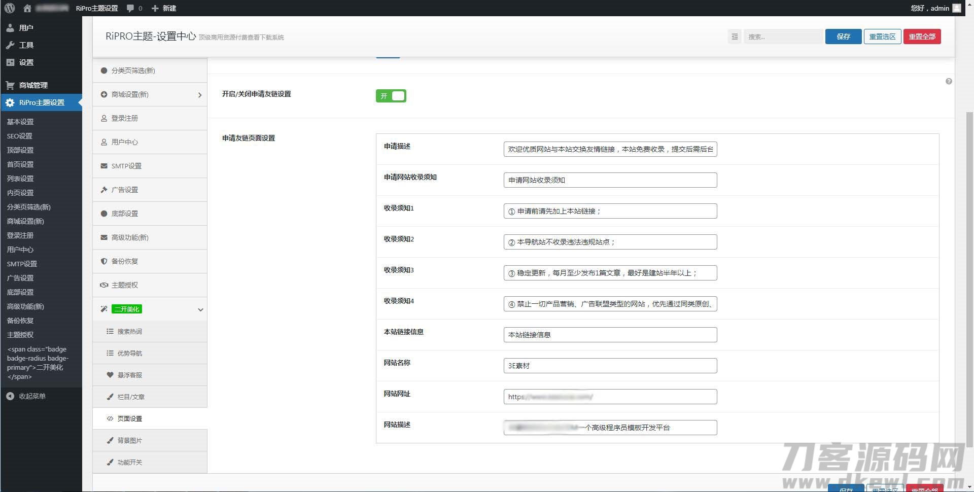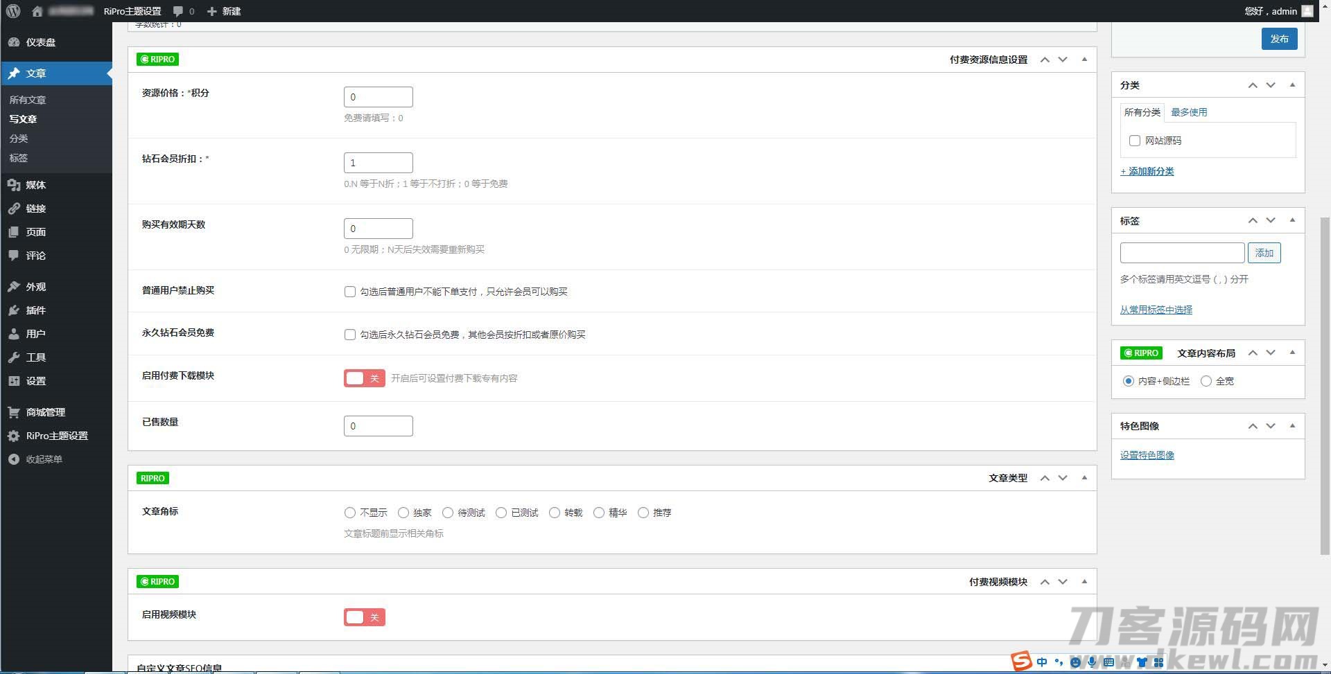 注意:使用该子主题前需要安装WordPress程序和RiPro模板