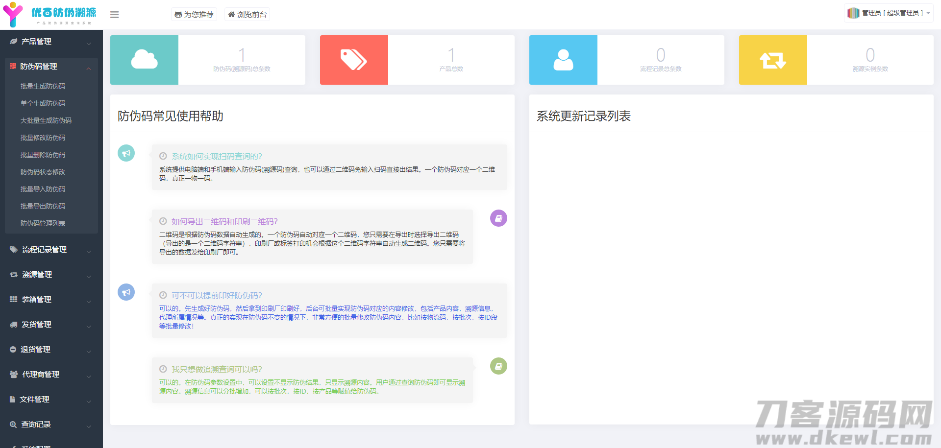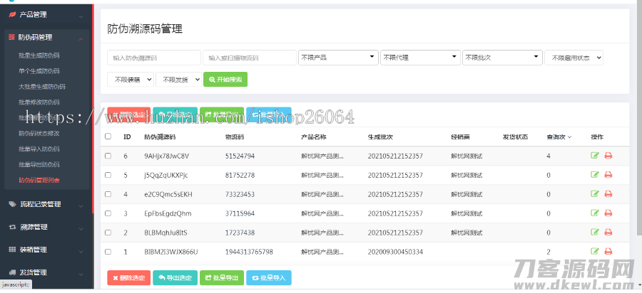 一物一码,活码管理。全平台防伪防窜货和溯源查询,装箱,发货,退货,流程记录以及经销商管理平台,广泛应用于农产品,食品,化妆品,药品,数码产品,电子电器,五金机械,烟酒,茶叶,服装鞋帽等防伪防窜货和产品追溯源查询。
