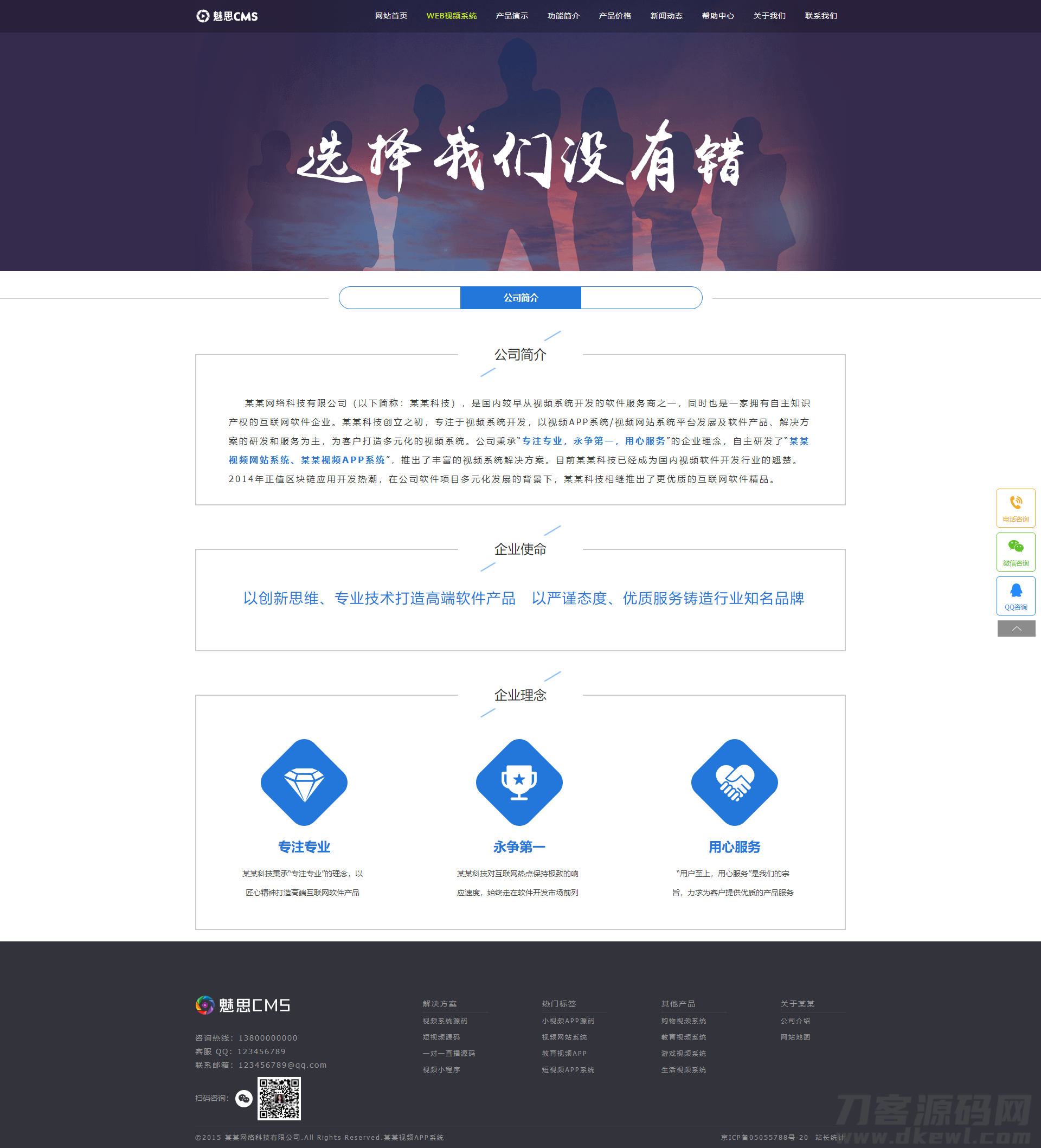 视频软件官网大气简洁,后台附带功能多,可以自定义在后台修改信息,上传内容
