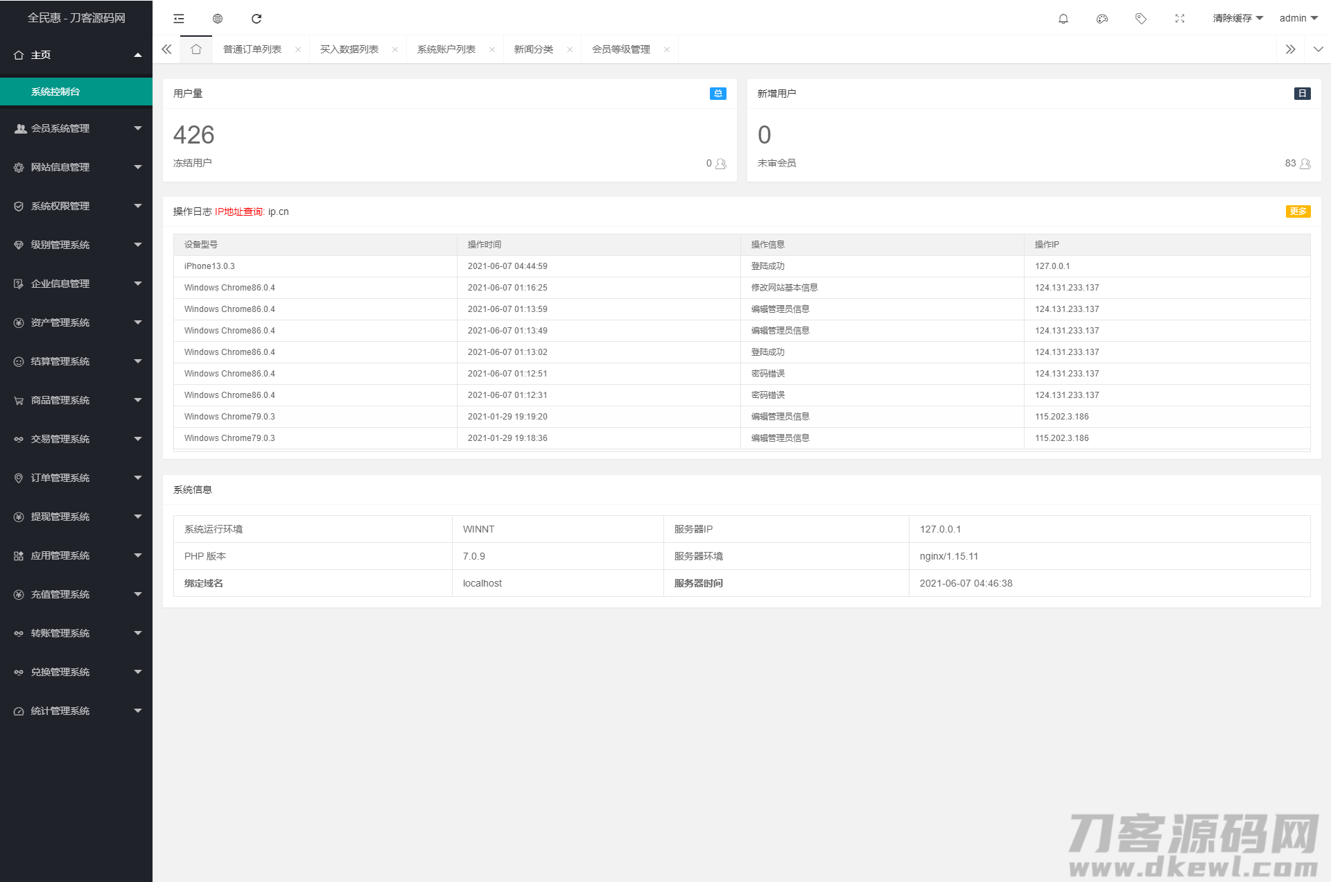 后台登录地址 域名/admin.php 账号admin 密码 123456