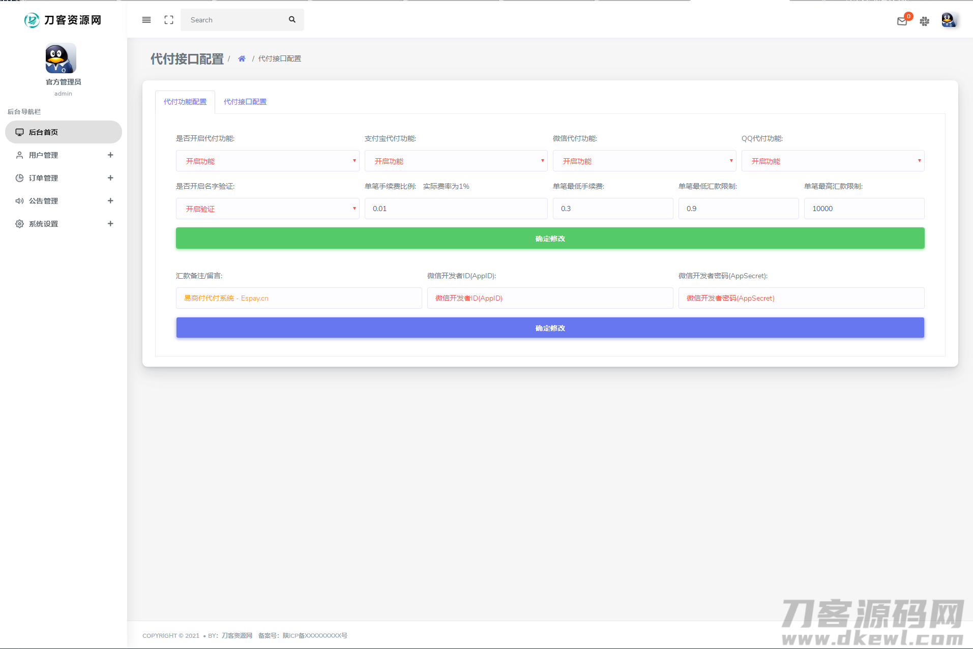 这套代付系统简单易懂,对接了微信支付宝QQ的和第三方API代付,也可以自己对接其他平台,再也不用害怕接口被和谐了,很不错的一套代付源码