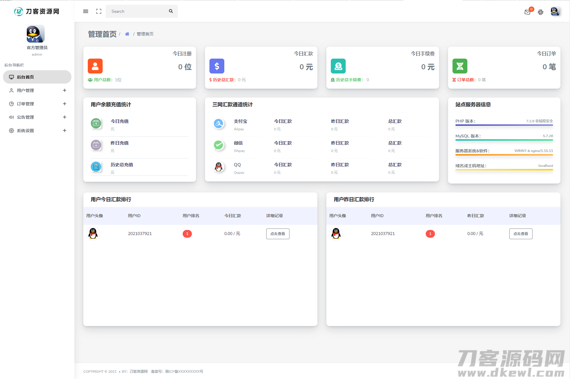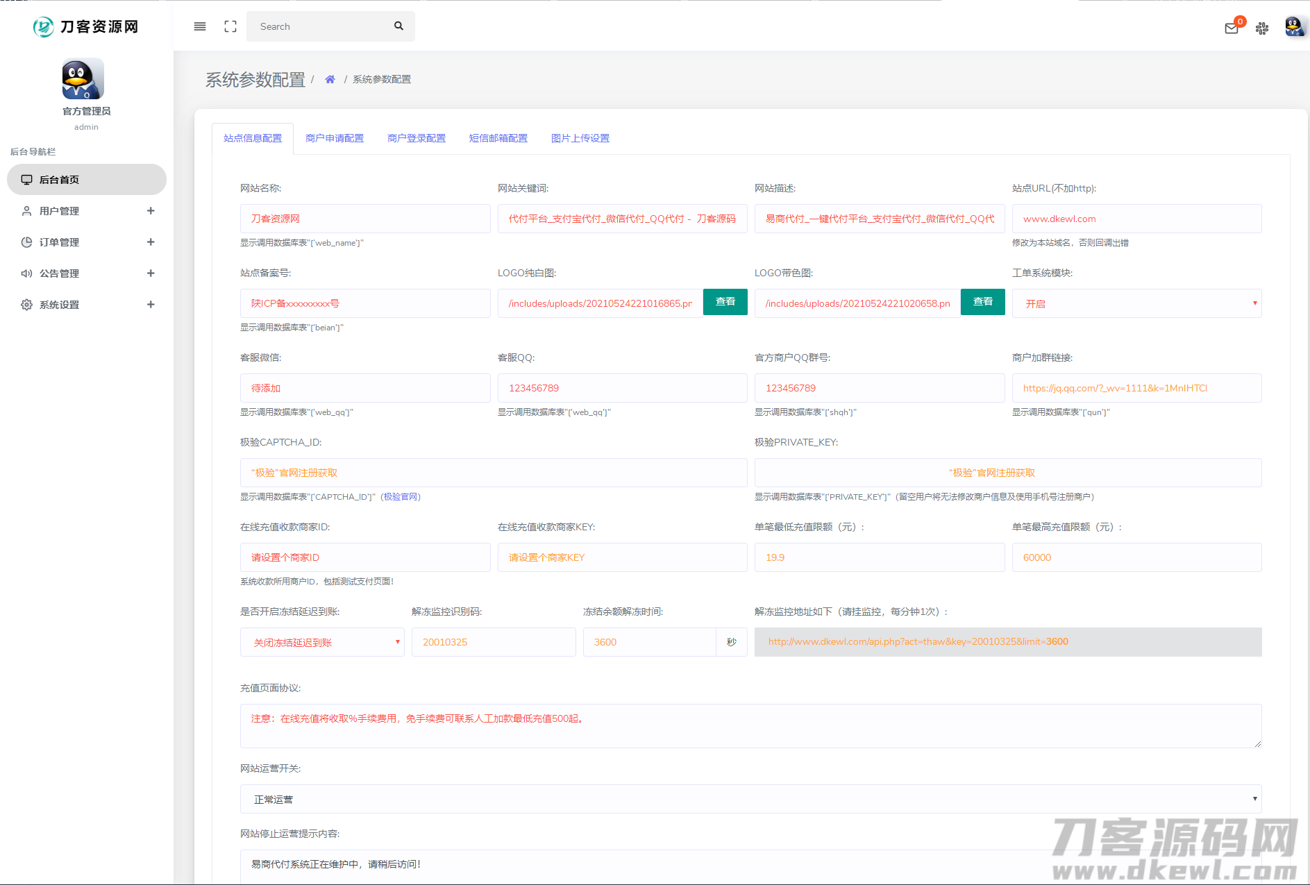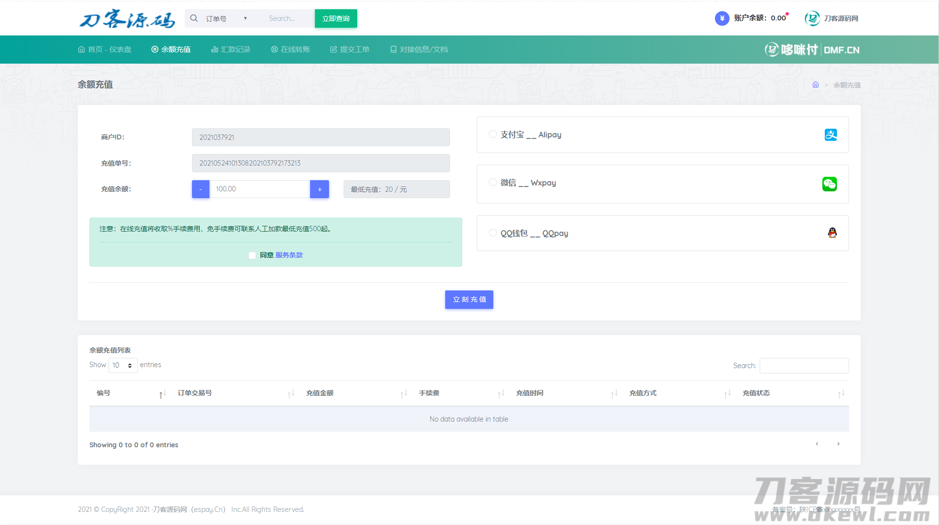 7、可开启充值金额延迟到账有效保证商户诈骗 8、余额充值接口集成易支付、微付、码支付、官方通道