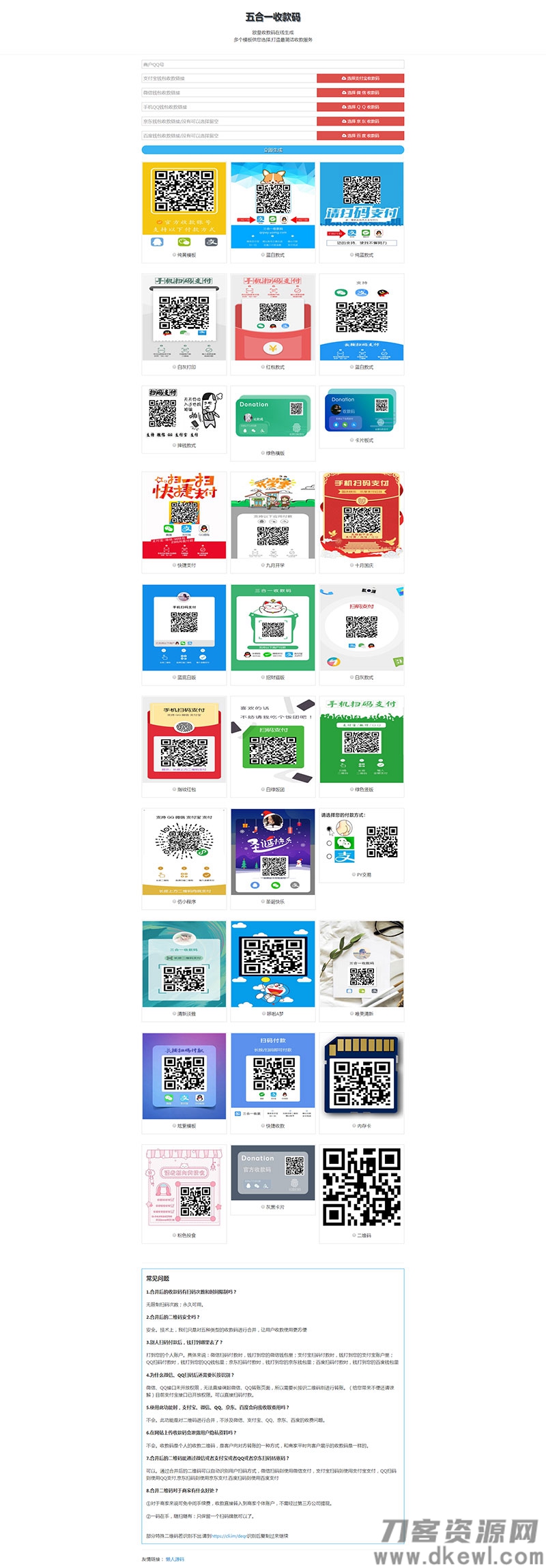 五合一收款码在线生成网站源码HTML单页版多模板免安装