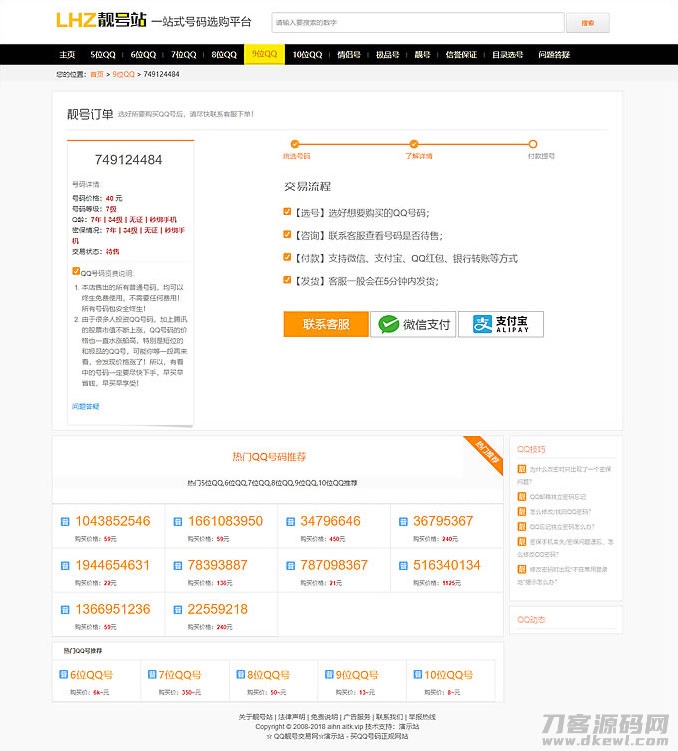 QQ号码/手机号交易平台,QQ靓号买卖网站源码,网络账号在线发布交易平台整站源码!适用于各种靓号在线选号交易平台!