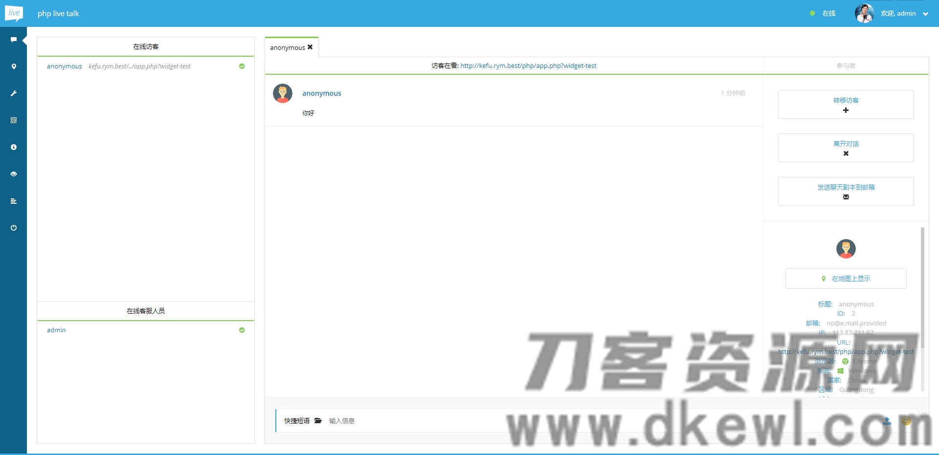 7、点击服务器填写“登录表单”后开始使用在线客服系统;