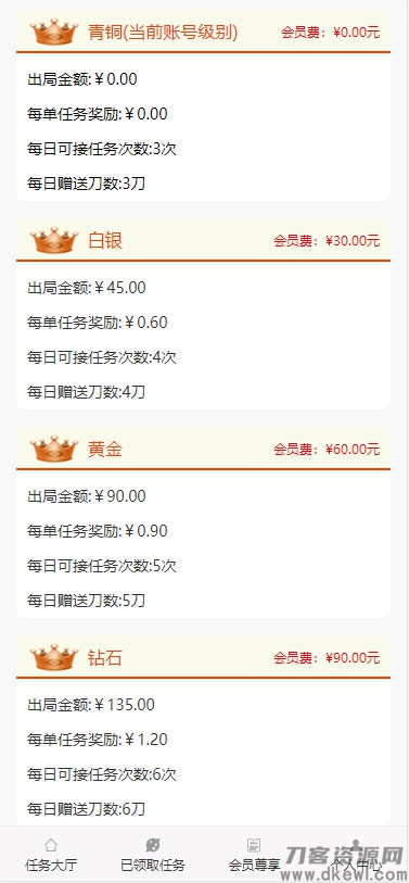 程序为thinkphp3.23框架。发布任务付费开通权限,支持等级购买,不同等级可以设置返佣和领取任务数。支持会员等级购买,三级返佣。