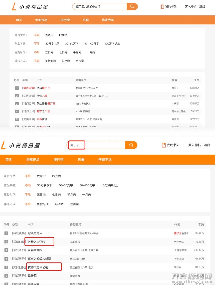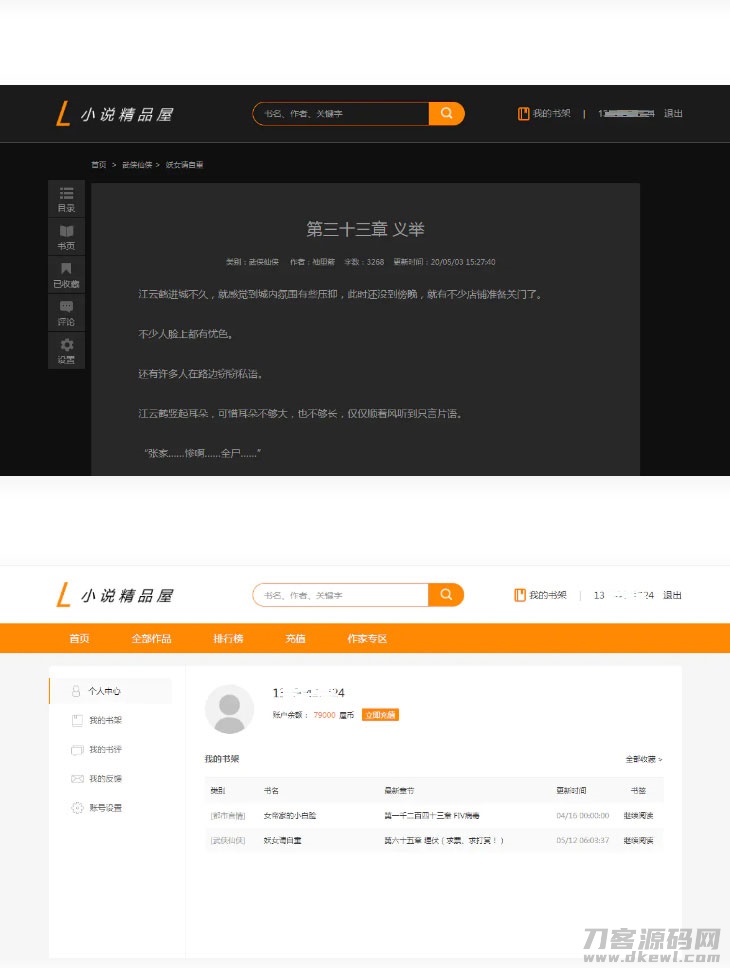 java橙色风格小说精品屋小说网站源码 带支付+作者中心+自动采集