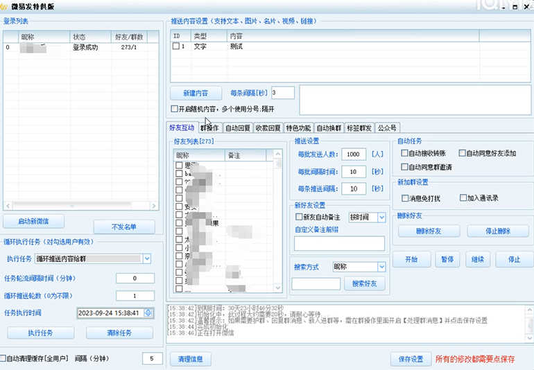 6、全自动给所有好友群发链接、小视频、名片、文字、图片