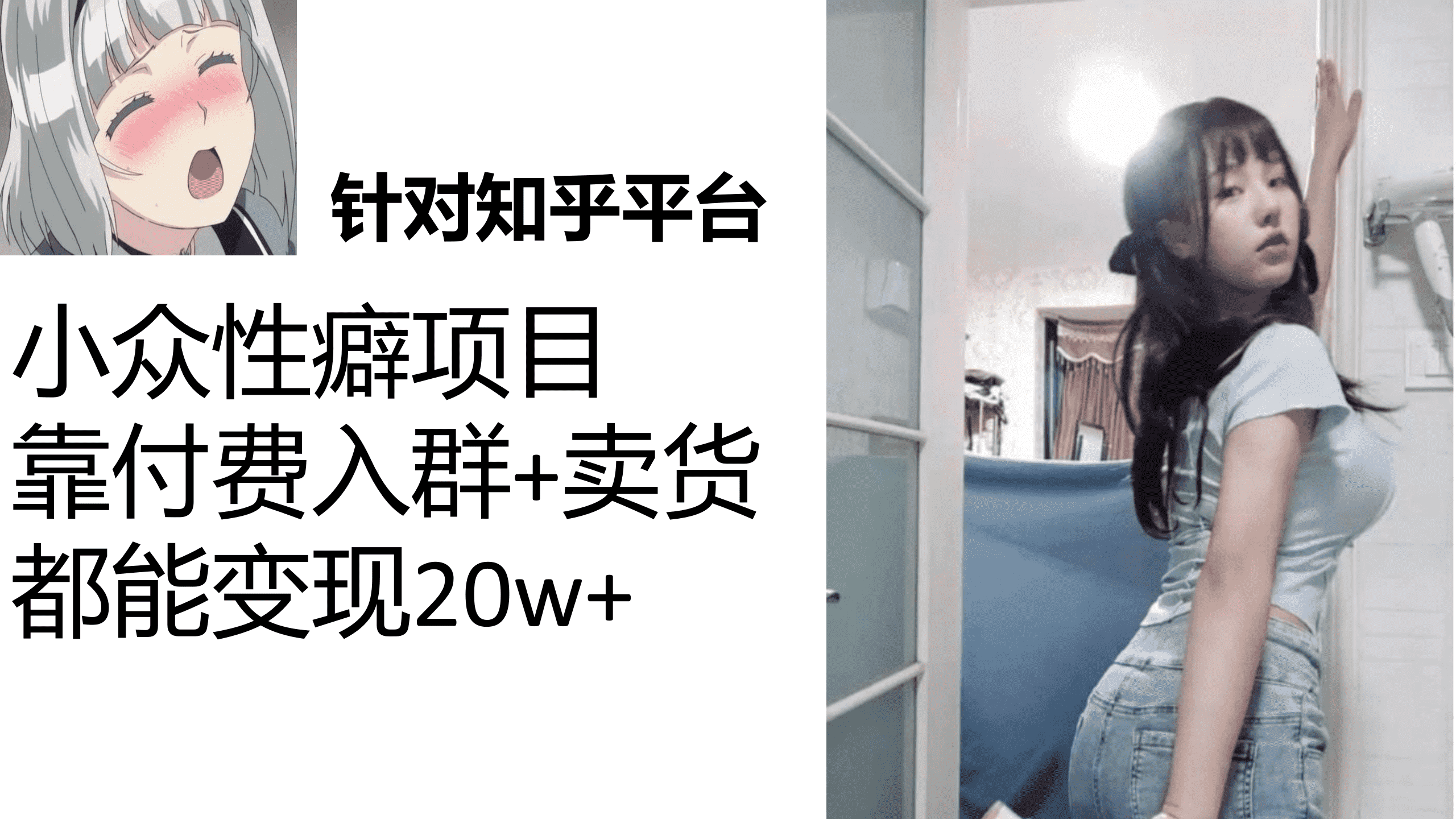 这次给大家带来的是知乎小众性癖项目,很多人说男人的消费能力还不如一条狗,但是你要是知道,男人对于下半身的欲望可是巨大的,十个男人九个都是老色批,只有抓住了人性的痛点,你才能从中捞到钱,看完这个项目,建议你第一时间去实操。