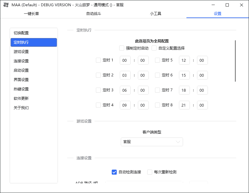 自动唤醒,自动公招,基建换班,刷理智,获取信用及购物,领取日常奖励,自动肉鸽等,自动战斗等多种功能,脚本里面可以自己设置需要的功能
