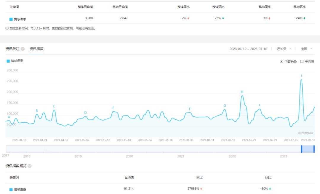 将用户引流到能够帮助他们解决问题和咨询师的微信上,可以是自己的,也可以找合作方,一般在抖音、快手、小红书、视频号,前期主发抖音,其他的平台也可以顺带一起发布,在百度指数搜索情感语录关键词,可以看到搜索量一直在增加。